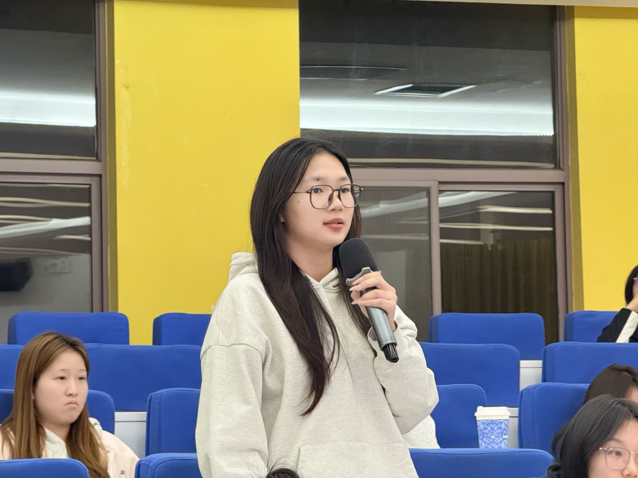 为进一步加深学生的理解,张老师现场还和学生积极互动。她在认真倾听学生发言后总结道:“同学们只有真正理解党、认同党,才能在入党道路上初心不改。”同时进一步强调,“严标准、严程序、严纪律”并非刻板约束,而是对入党初心的层层淬炼,最终确保新发展党员以“政治合格”为底色、“素质过硬”为支撑,成为党组织中能担当的先锋力量。