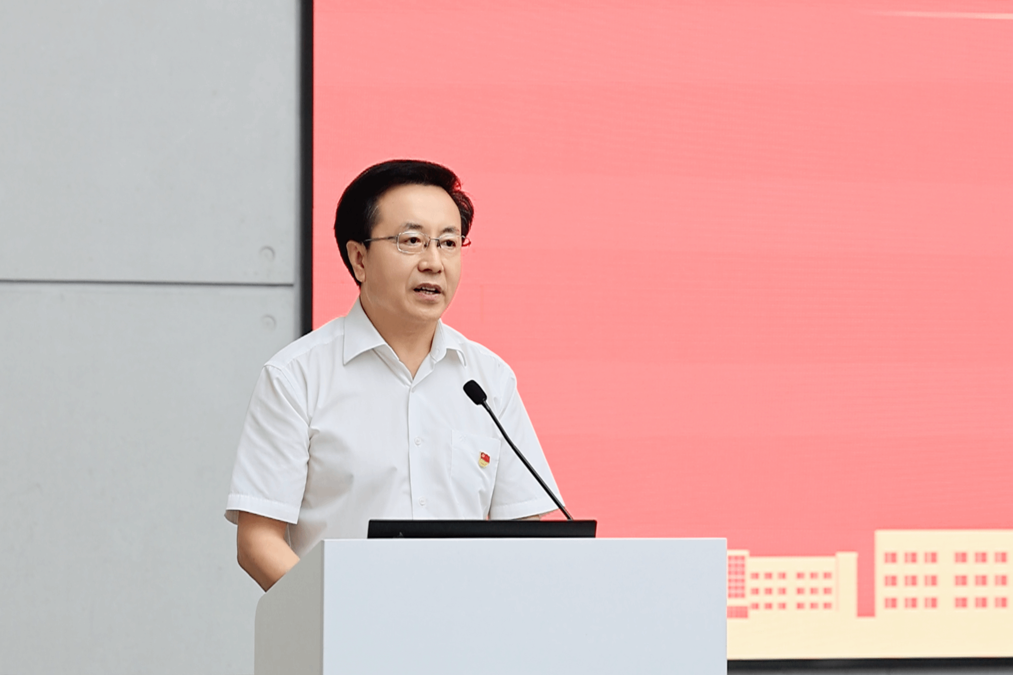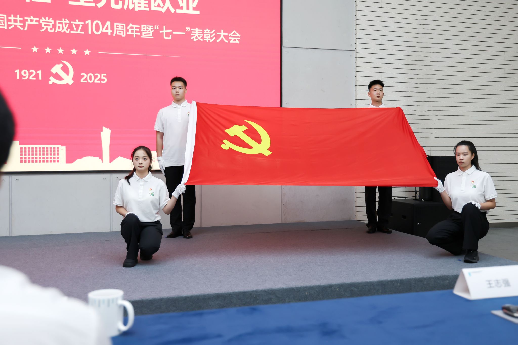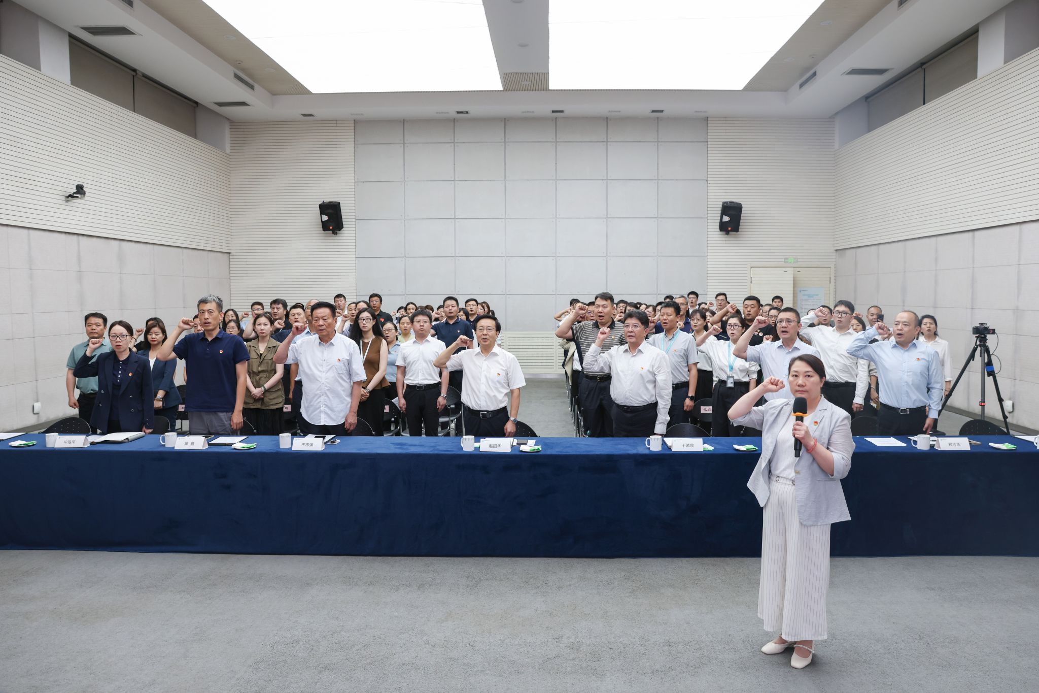 大会在庄严的《国歌》声中拉开帷幕,激昂旋律奏响奋进序曲,鲜红党旗映照赤诚初心,全体与会人员在庄严肃穆的氛围中,重温红色记忆,凝聚前行力量。