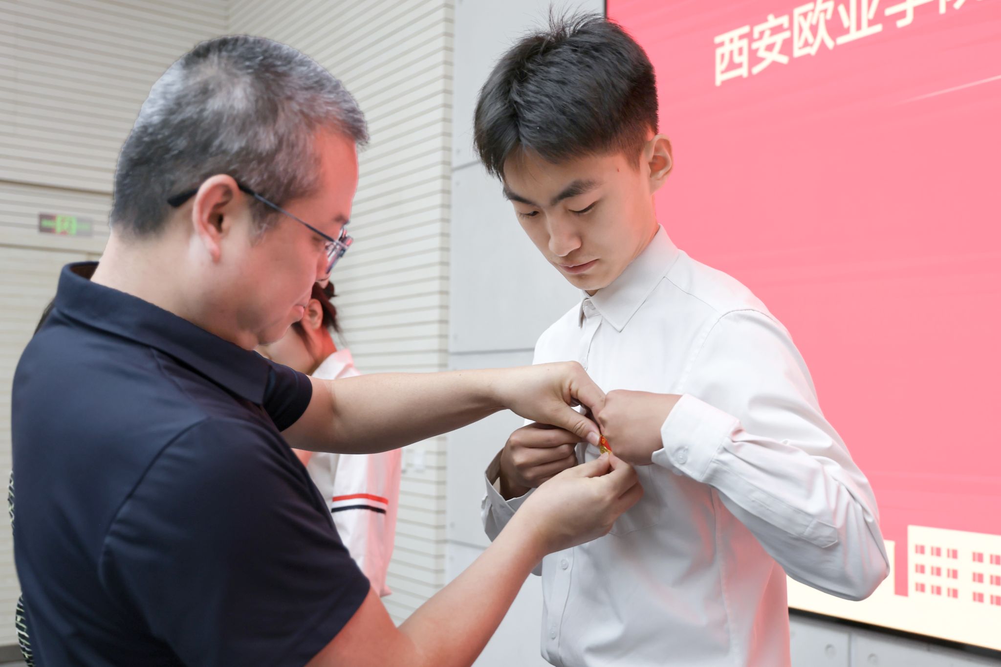 “薪火相传”佩戴党员徽章仪式温情举行。学校党委成立后首批发展的教工党员代表,为新发展预备党员代表佩戴党员徽章。一枚党徽,是红色基因的赓续,更是初心使命的接力;一次传递,是老党员的殷殷嘱托,更是新党员的铮铮誓言。新老携手,以传帮带精神共赴育人征程。