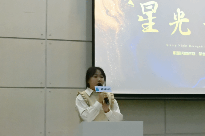 李嘉瑜老师上台发表讲话,讲述了自己的求学经历,赞扬德鲁克社区组织能力强,社区学子的精神面貌佳。她说:我们通过社区的非正式教育,我们学会了自我管理、团队管理,拥有了管理的DNA,并带着这样的DNA扬帆起航。最终获得了属于自己的星光。所以,你们是闪耀的星辰之光,为德鲁克青年社区增添了绚丽的色彩!