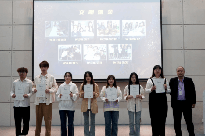 吴桐老师为文明宿舍获奖学生代表颁奖优秀社区班我们的社区是一个大家庭,是所有人力量凝聚的中心。在这个大家庭里,由很多的社区班组成温暖的小家庭,他们团结友善、积极向上、管理有效。今天,他们将从幕后走向台前,接受属于自己的荣誉。