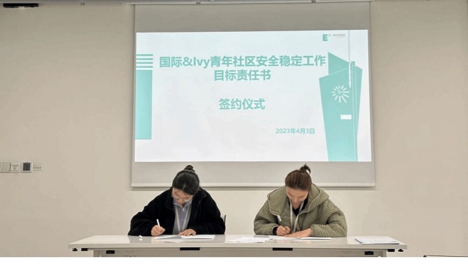 签约仪式前,向全体辅导员下发了《安全稳定工作目标责任书》。第四青年社区分党委宣传委员郭阳同志带领全体老师一起学习了责任书的相关内容,并对签订《安全稳定工作目标责任书》的必要性和具体事宜进行了说明,还特别强调了各辅导员老师对社区安全稳定工作要明确各自的职责,包含安全稳定责任制、学生思想政治教育、安全法治、心理健康教育、突发事件处置、学生违法违纪事件处理、学生社团活动审批、公寓安全管理、师生信息保密、消防安全共10项具体工作职责,做到安全工作警钟常鸣,共同维护师生安全和校园稳定。