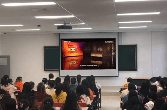 紧接着,观看《党史故事100讲》抗美援朝视频篇,当缓缓落幕,在场的同学都满怀激动之情难以自抑。其中还有两名同学上台分享了心中感悟,慷慨激昂,振奋人心。当前是入党积极分子的南丽蓉同学上台说:“历史是最好的教科书,中国革命历史是最好的营养剂。学习党史、国史,是坚持和发展中国特色社会主义、把党和国家各项事业继续推向前进的必修课。在对历史的深入思考中做好现实工作,更好走向未来,才能不断交出坚持和发展中国特色社会主义的合格答卷。