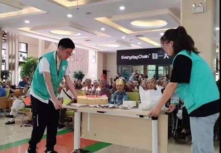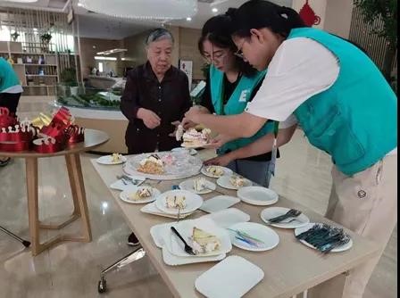 当得知今日也是曲江老年服务中心开展14位老寿星以及11位员工寿星为主的“长者生日会”,实践队的同学们积极协助老年服务中心的工作人员准备活动,同学们热情帮老人们推轮椅、切蛋糕、带生日帽等,在忙碌的过程中感受到助人为乐的快乐,从关怀和情感的角度出发,深刻理解并体会到“曲江老年服务中心行”活动的重要意义。