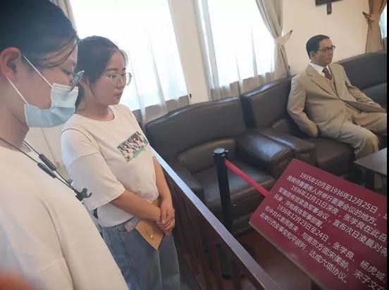 “三下乡”实践队的同学们走进极具民族建筑风格的张学良将军公馆,观摩举行重要会议的还原场馆、观看事变时的照片和生平陈列。