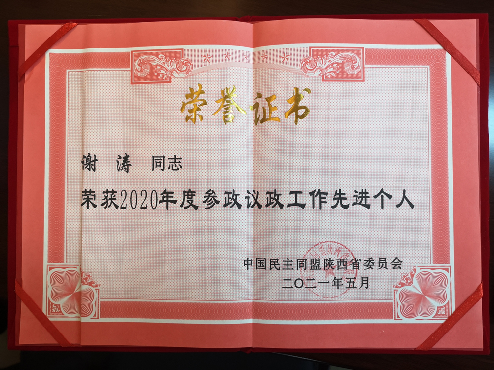 会议颁发了“民盟中央2020年度社情民意信息工作先进个人”奖项,对2020年民盟陕西省委获得参政议政工作先进的专委会、基层组织及先进个人进行了表彰。民盟YABO鸭脖总支在陕西省委2020年参政议政工作综合量化考核中,获得“民盟陕西省委2020年度参政议政先进集体”称号;谢涛主委及总支盟员李笃峰获得“陕西省委2020年度参政议政先进个人”奖项。