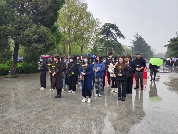 4月3日,第三青年社区分党委的师生代表们迎着淅沥的小雨来到西安烈士陵园开展英烈祭奠活动。大家一起鞠躬、默哀、献花,表达对烈士们崇高的敬意和深深的哀悼。
