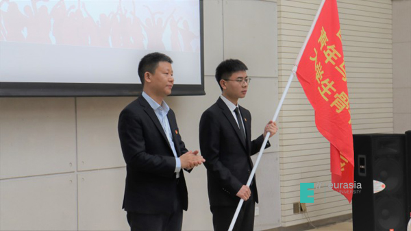 在庄严的国歌声中本次开班典礼拉开序幕。首先,校团委副书记李艳宣读课程安排,本次培训班包含了理论知识、社会实践、能力提升等方面的课程,帮助学生提高思想认识,提升综合素养。 接下来,校党委学工部副部长、校团委书记董杨为本次大骨班进行授旗;学员代表魏怡帆发言,要认真上课,按时完成各项作业,不断提高理论知识水平,努力成为“有理想、有本领、有担当”的新时代优秀青年。校党委委员、纪委副书记赖志彬在致辞中殷切希望广大学生干部要勇敢肩负起时代赋予的重任,志存高远,脚踏实地,努力在实现中华民族伟大复兴的中国梦的生动实践中放飞青春梦想。最后,在全体成员《光荣啊,中国共青团》响亮的歌声中,典礼顺利结束。