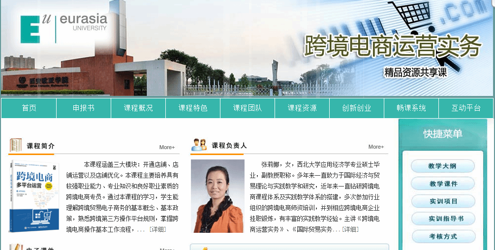 她本人承担校级重点课程《跨境电商运营实务》的建设和教学任务,该门课是国际经济与贸易专业的一门专业核心课程,主要内容包括开通店铺、店铺装修、店铺运营和店铺优化四个模块。为了提升课堂教学效果,她多次采用校企联合授课形式,线上线下混合式教学,带学生去企业实地参观,以及赛教结合等多种形式提升课程教学的效果,且已形成一套行之有效的课堂教学模式。