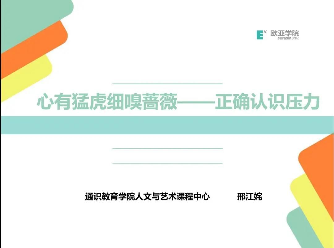 邢江姹老师选择了压力这个主题,带领我们正确认识了压力,也引领学生学会正视压力,化压力为动力。