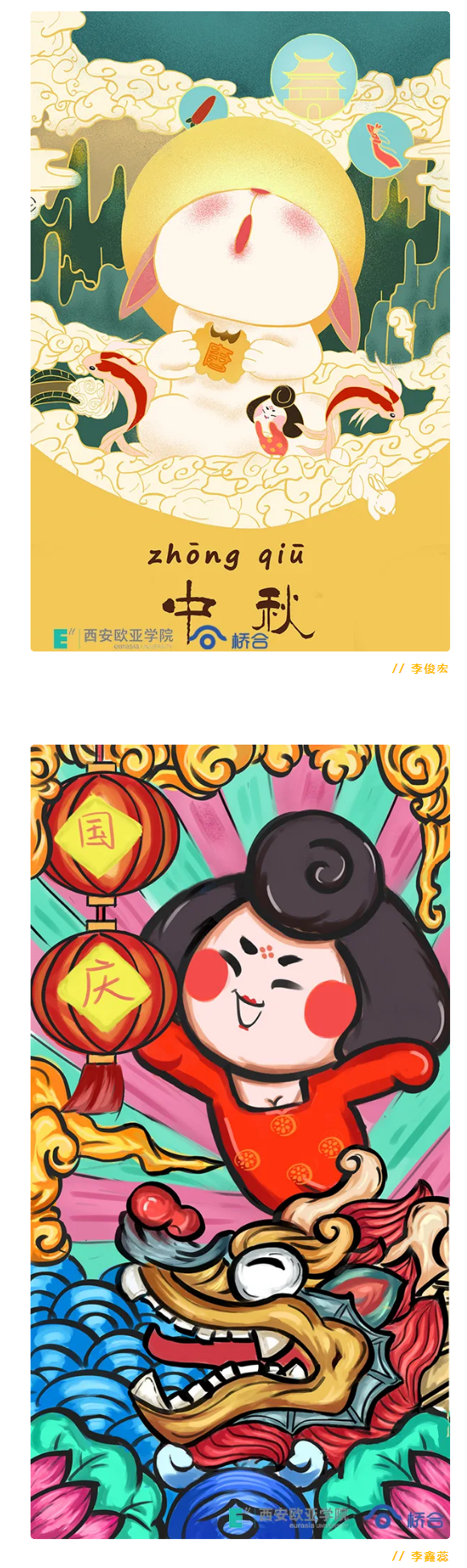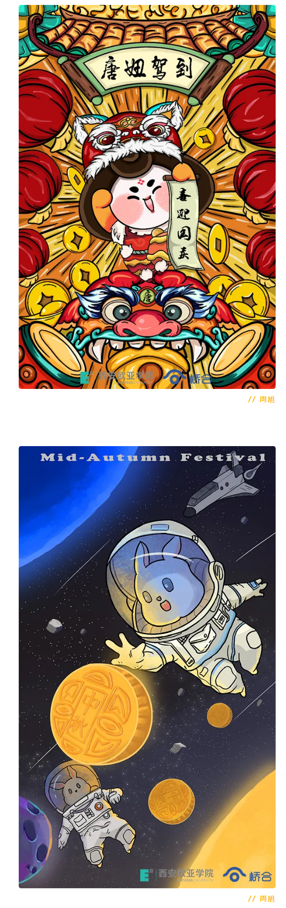 举国同庆日,阖家团圆时。2020年国庆遇见中秋,佳节欢愉双倍而至,鸭脖在桥合动漫实习的高职学院18级动漫专业的同学们,借着这个美好时刻,将自己的平面设计能力与佳节喜悦气氛相结合,设计出可爱的动漫人物“唐妞”,为所有人献上一份特别的礼物,一起来看吧!