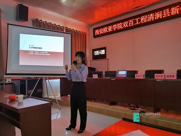 通识教育学院院长助理段永刚对国内外从传统到现代的教育理念进行了介绍和分析,为新老师们植入了最新的教育教学发展理念、拓宽了教育教学视野;课程负责人卢卓元老师结合清涧县特色文化,运用有效和高质量的写作与表达,以全新的思维使新任教师产生了共鸣和冲击;院长助理潘珊珊分享了以学生为中心的课程设计及质量评价,让新任老师理解了什么是好的课程设计以及如何利用课程评价标准对教学效果进行科学的评价;杨璐璐老师向大家介绍了设计思维的全新理念和实用工具的使用方法及现场实践;蒲转莉老师带领老师们探寻了情绪和压力的真相,给出了一系列专业的方法和建议,引导教师学会管理情绪,拥有阳光心态,快乐工作,幸福生活。