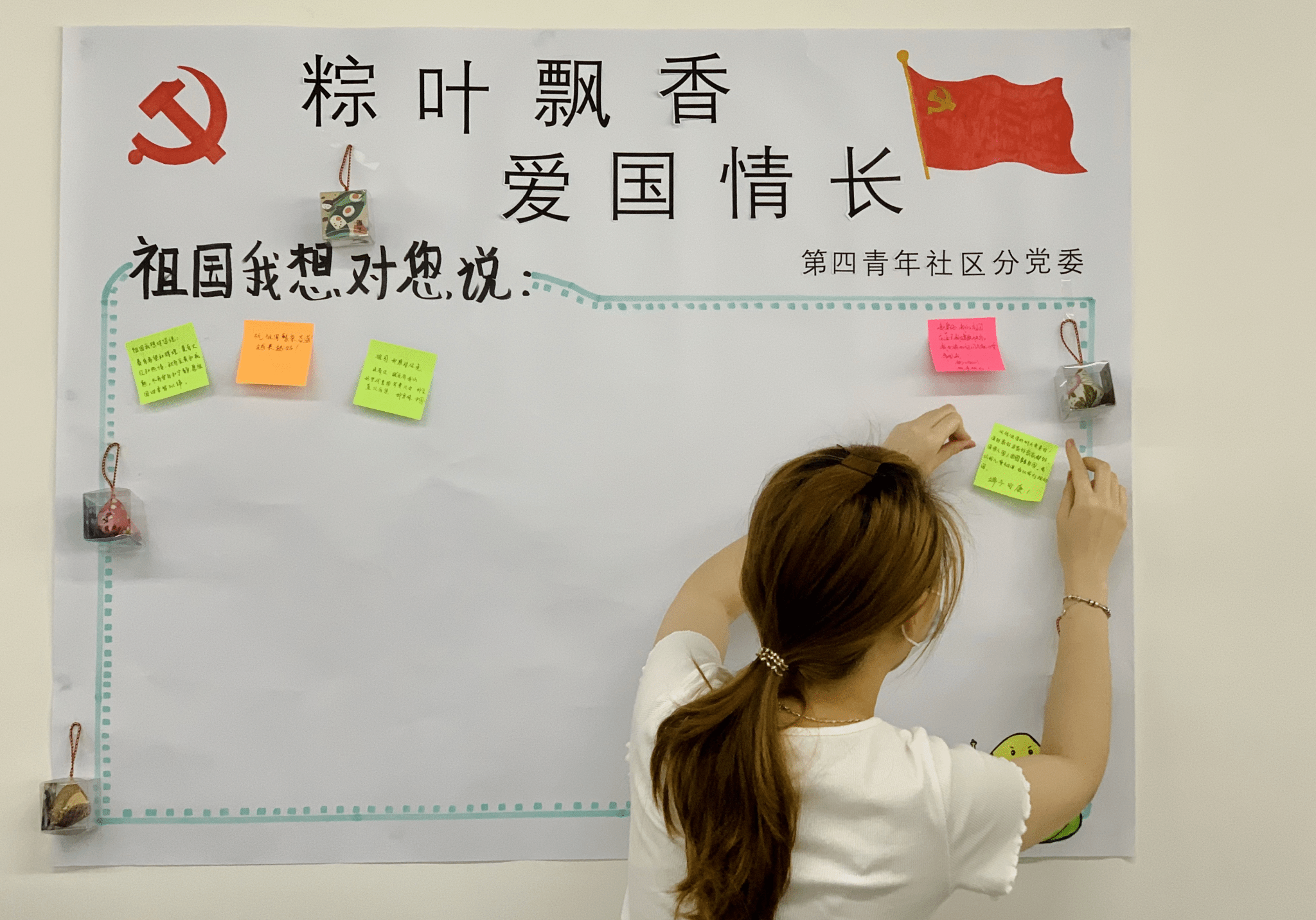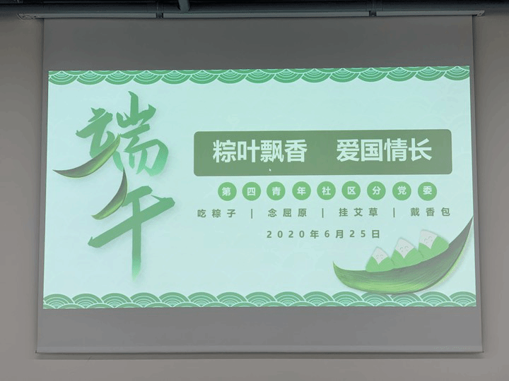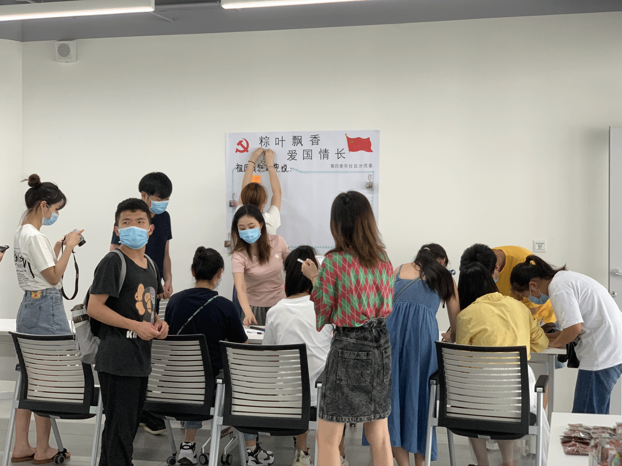 “端午临中夏,时清日复长。”转眼又到了一年一度的端午节,疫情之下,健康平安成为了每个人最朴素的心愿。为加强学生的端午节文化内涵,继承和弘扬中华优秀传统美德。第四青年社区分党委于2020年6月25日在南客厅组织开展了以“粽叶飘香,爱国情长”为主题的端午节活动。