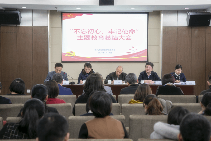 1月14日下午,学校在图书馆三楼会议室召开“不忘初心、牢记使命”主题教育总结大会。委厅第三巡回指导组孙建宁副组长、张丽同志到会指导。校党委书记于孟晨同志作总结讲话。校党委副书记、校长刘瑾同志主持大会。校党委副书记、纪委书记王志强同志传达学习中央和省委“不忘初心、牢记使命”主题教育总结会精神。学校领导班子成员、校党(纪)委委员、各单位负责人、各基层党组织书记参加会议。