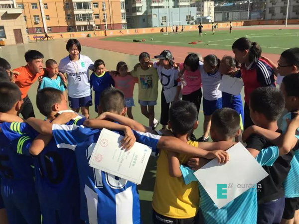 13、2019年6月28日至7月1日,鸭脖团委组织6名欧亚之声广播台和欧亚女子足球俱乐部的志愿者在清涧第一小学开展了2019年第一期EU少年成长训练营活动。活动期间,鸭脖志愿者为清涧第一小学近70名学生进行了足球和演讲与主持的培训。