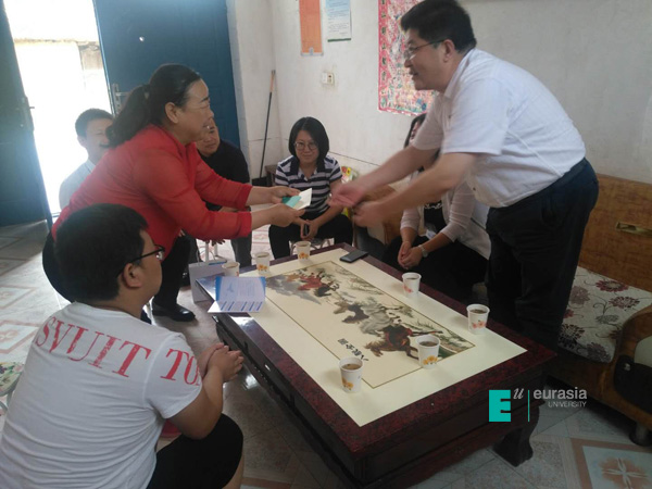 (图一)校党委书记给学生家长送上慰问金