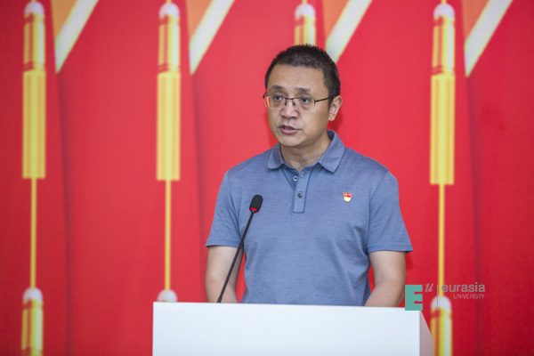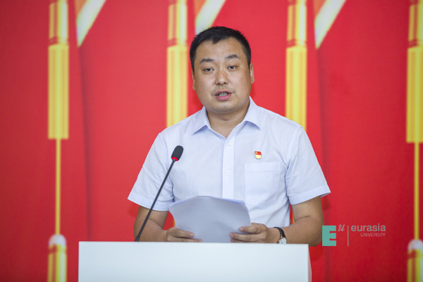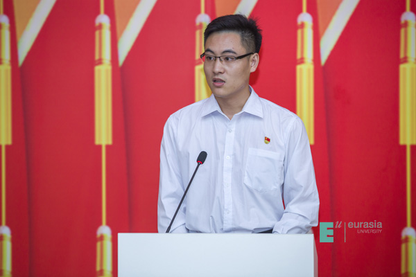 优秀共产党员学生代表张瑞超从勇做新时代奋进者、加强理论学习提升政治觉悟、强化责任担当等三个方面讲述了发挥党员先锋作用、融入实现中华民族伟大复兴中国梦的做法与实践。