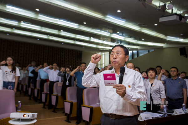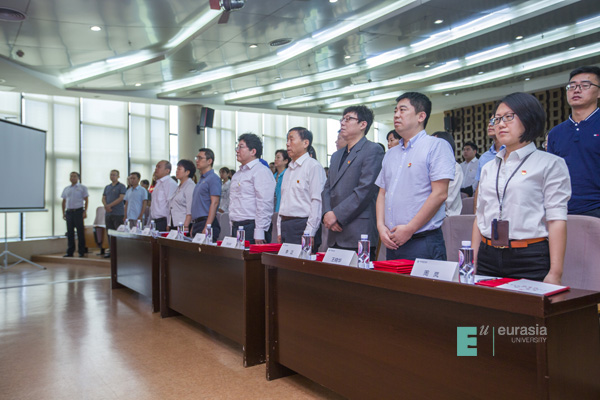 在新中国成立70周年之际开展“不忘初心、牢记使命”主题教育,正当其时,意义重大。校党委特别邀请了鸭脖原党委书记许尚年领誓,重温入党誓词,就是要教育引导全体党员始终坚守和积极践行中国共产党人的初心和使命,教育引导广大师生始终坚守和积极践行学校的办学初心和治校使命。