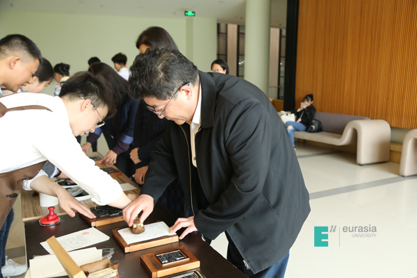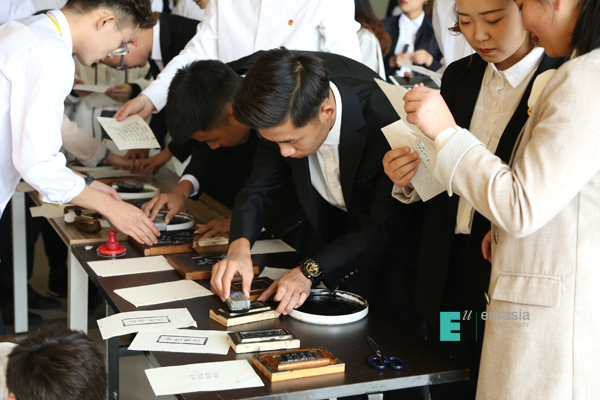 (图十一)校领导体验拓印入团誓词活动