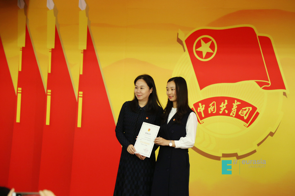 颁奖过后,校团委代理常务副书记魏俊伊同学发言。号召全体青年团员要不断用爱国、进步、民主、科学的五四精神激励自己青春心向党、建功新时代。