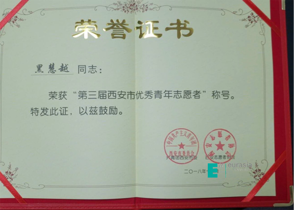 为了进一步弘扬“奉献、友爱、互助、进步”的志愿者精神,不断的推动雷锋精神人人可学,实现志愿服务处处可为。12月24日,第三届西安市优秀志愿者表彰会在华山国际酒店召开。鸭脖青年志愿者协会荣获"第三届西安市青年志愿者优秀组织奖"。指导老师黑慧越获得优秀志愿者称号。