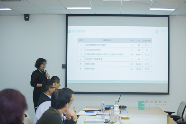 陈乃霞副书记作重要讲话。她充分肯定了欧亚学院在意识形态、“四一体”思政课教育模式改革创新和稳定安全等方面取得的成效,认为是走在全省民办高校前列,成为陕西民办高校的引领者。她强调了“陕西高校思政课教师大练兵”主题活动的重要意义,希望欧亚学院能够扎实做好“陕西高校思政课教师大练兵”主题活动,积极探索建立思政课教师“配齐”“建强”“保障”制度及措施,确保思政课教师全员参与“大练兵”,推动专业课教师广泛参与“大练兵”,全面推进习近平新时代中国特色社会主义思想“三进”工作。随后,陈乃霞副书记一行在许尚年书记等校领导的陪同下,走进教室,观摩了通识教育学院“思政课教师大练兵”活动和听取了思政课现场教学情况。
