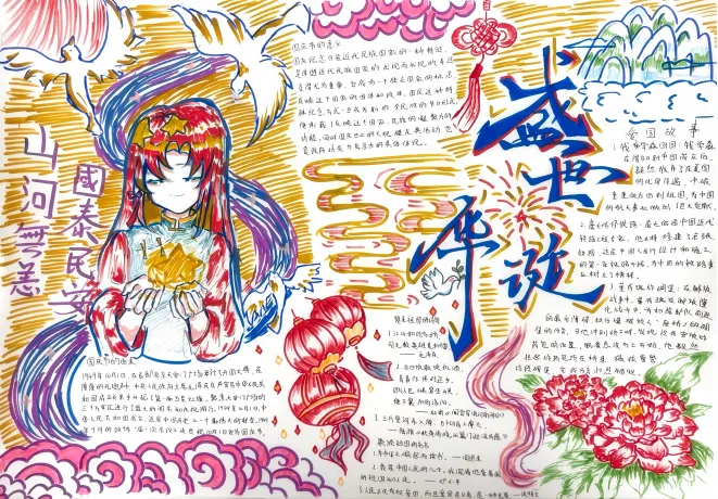 为深入贯彻习近平总书记关于青年工作的重要思想,大力弘扬爱国主义精神,激励青年学子以青春热血抒发爱国之情,用实际行动为盛世中华献礼,为祖国建设添砖加瓦,第二青年社区分党委紧紧抓住国庆佳节这一重要契机,精心策划并组织了庆国庆手抄报活动,引领广大师生以笔墨传情,共抒爱国情怀。