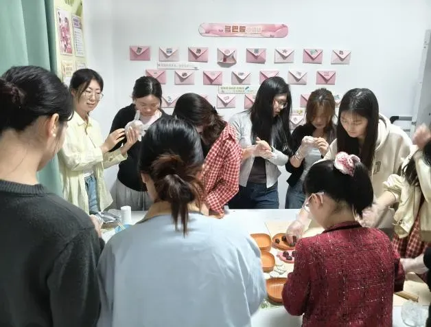 活动现场早已暖意融融:社区党员教师化身“陪伴导师”,与同学们围站在操作台前,揉面要揉到光滑有弹性,分馅需配得均匀恰当,压模、塑形更是步步细致。“这面团的锤炼,就像我们的党性修养要反复打磨;这馅料的搭配,正如社区建设得靠师生同心聚力。”袁老师一边演示包抹茶馅的手法,一边将“365同行计划”的育人内涵融入其中——没有生硬的宣讲,却让思想引领住进了生活点滴,让“沉浸式文化育人”有了最鲜活的载体。