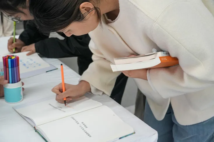 活动伊始,参与者在打卡墙选取幸福泡泡,分享“拿奖”“吃甜品”“四六级一遍过”等幸福瞬间,传递生活点滴喜悦;“幸福之树”环节,同学们用油画棒与丙烯颜料在卡纸作画,分别创作根系、树干与枝叶,最终贴入展板;“幸福之书”环节,大家在书页空白处写下幸福感悟。活动尾声,参与者领取微笑杯垫作为回馈,既收获了创作快乐,也在校园传递了温暖。