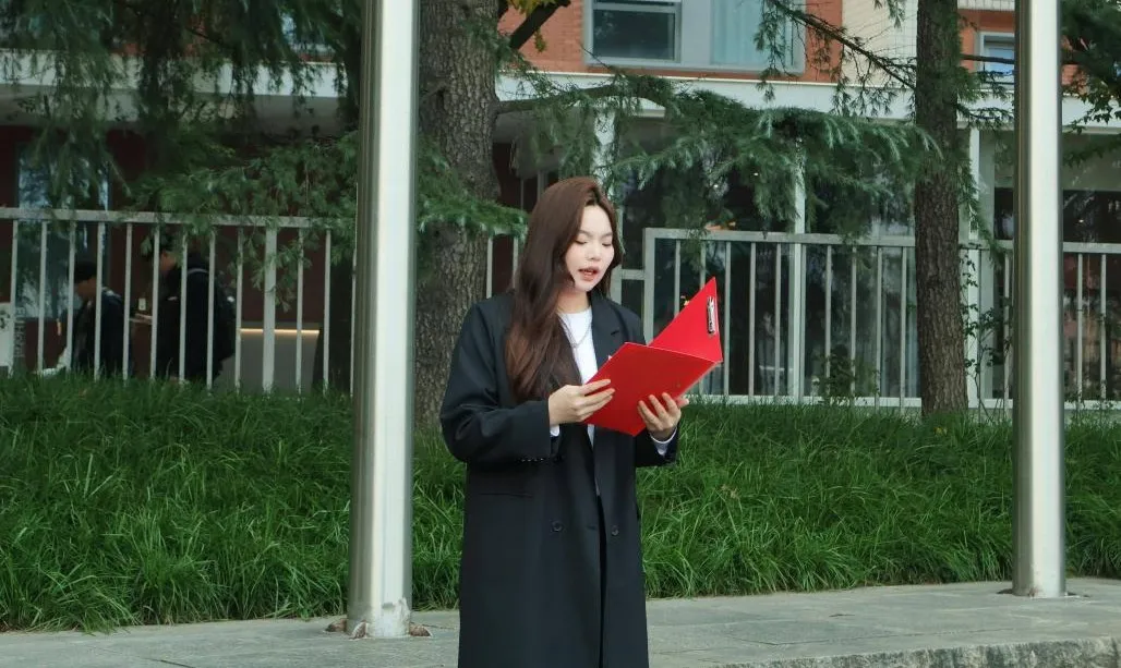 仪式第二项是国旗下演讲环节,预备党员张欣琰同学给大家带来关于“八十年风雨铸辉煌新青年接力续荣光”的主题演讲。