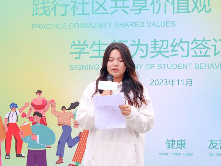 为引导学生践行“整洁、健康、友善、自律”的青年社区共享价值观,培养学生契约精神,养成良好的行为习惯和精神风貌,建设安全文明和谐的校园环境,11月7日,学生发展处在虹桥广场组织开展了2023级新生契约签订仪式。学生发展处处长董杨、处长助理李嘉瑜、各青年社区主管和学生行为引导负责老师及来自各青年社区共180名学生参与了此次活动。