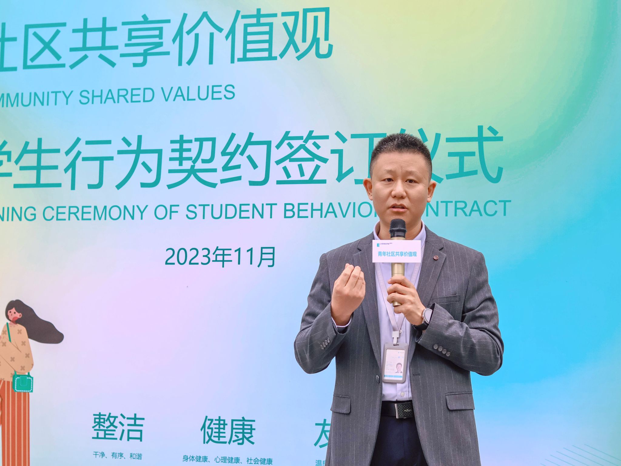 学生发展处处长董杨老师在启动仪式上发表讲话,他强调:十八九岁是人生观价值观形成的重要阶段,同学们需要重新审视自己,锁定目标并为之坚持,并形成习惯,进而达成自律。也希望同学们从内心去思考,用行动去落实,自觉践行青年社区共享价值观,从关注宿舍卫生的“整洁”做起,从关注自身的“身体健康、心理健康和社会健康”做起,从营造积极的关系和友爱的氛围做起,在大学生活中享受自律带来的快乐,不断将自身变得充实与强大起来。