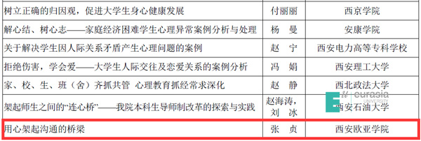 为了展示高校辅导员工作的优秀成果,交流推广先进经验,省委高教工委在我省高校中开展了第二届辅导员优秀工作案例评选活动。日前,在2016年陕西省辅导员优秀工作案例评选活动中,鸭脖张贞老师的案例《用心架起沟通的桥梁》在全省高校215个参赛作品中脱颖而出,荣获了优秀奖。