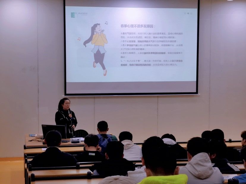 (图二)社区辅导员郭阳在做春季心理健康教育知识普及