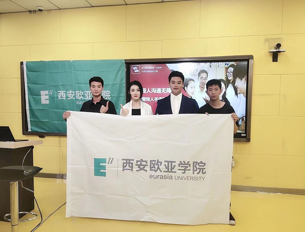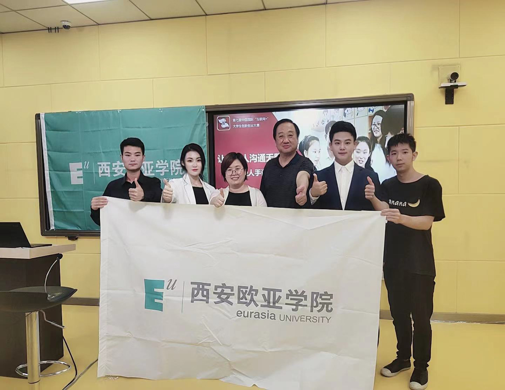 在项目的研发和创作过程中,江渭老师带领我们走访聋哑学校进行了大量调查,在数百次的沙盘推演、策划书校对,PPT修改之后,所有环节都经历了团队反反复复N次打磨,中间也有成员一度坚持不住想要放弃。每个难熬的时刻、焦灼的时刻,都是江老师坚定了大家的决心,他时刻鼓励我们、不辞辛苦地陪伴我们,还记得我和江老师就项目的问题讨论到凌晨两三点是常有的事,江老师不仅在项目上指导我们怎么做体现专业性,还教导我们许多做人的道理,他最常说 “开弓哪有回头箭”、“是金子总会闪光”,这些话语都给我很大力量,让我有决心带领团队把项目圆满完成。最终,“金子”在团队小伙伴的配合下、在一次次的打磨之后发出了自身的光芒——我们拿到了 “互联网+“这块沉甸甸的金牌!