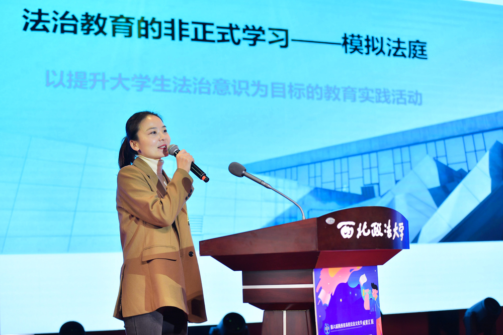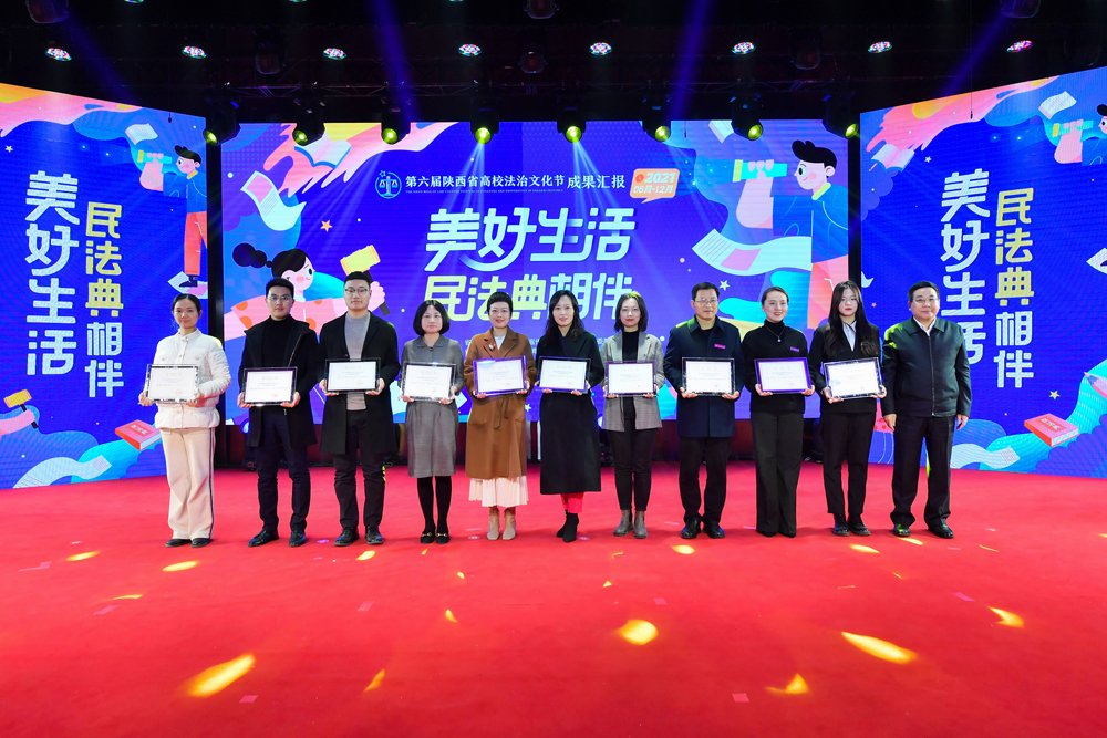 本届高校法治文化节以“美好生活·民法典相伴”为主题,采用线上和线下并行的方式,充分运用新媒体新技术,深入开展多个法治宣传和法治文化活动。当日活动对高校“十佳创新普法活动”“五个一”优秀作品、“法典先锋”冲关答题挑战赛获奖选手、第六届陕西省高校法治文化节优秀组织单位进行了表彰。鸭脖是唯一分享发言的民办高校。