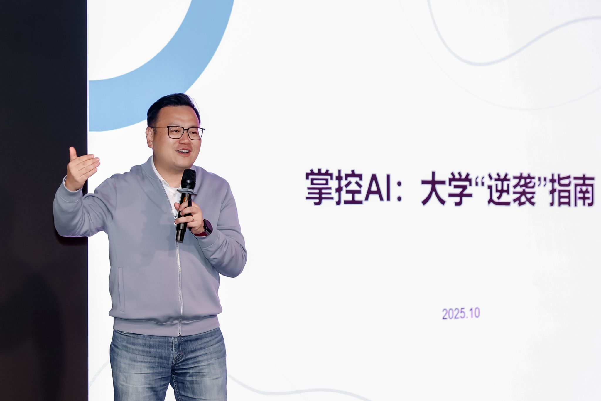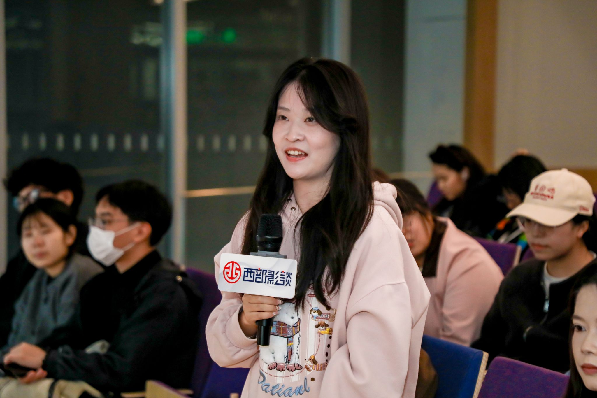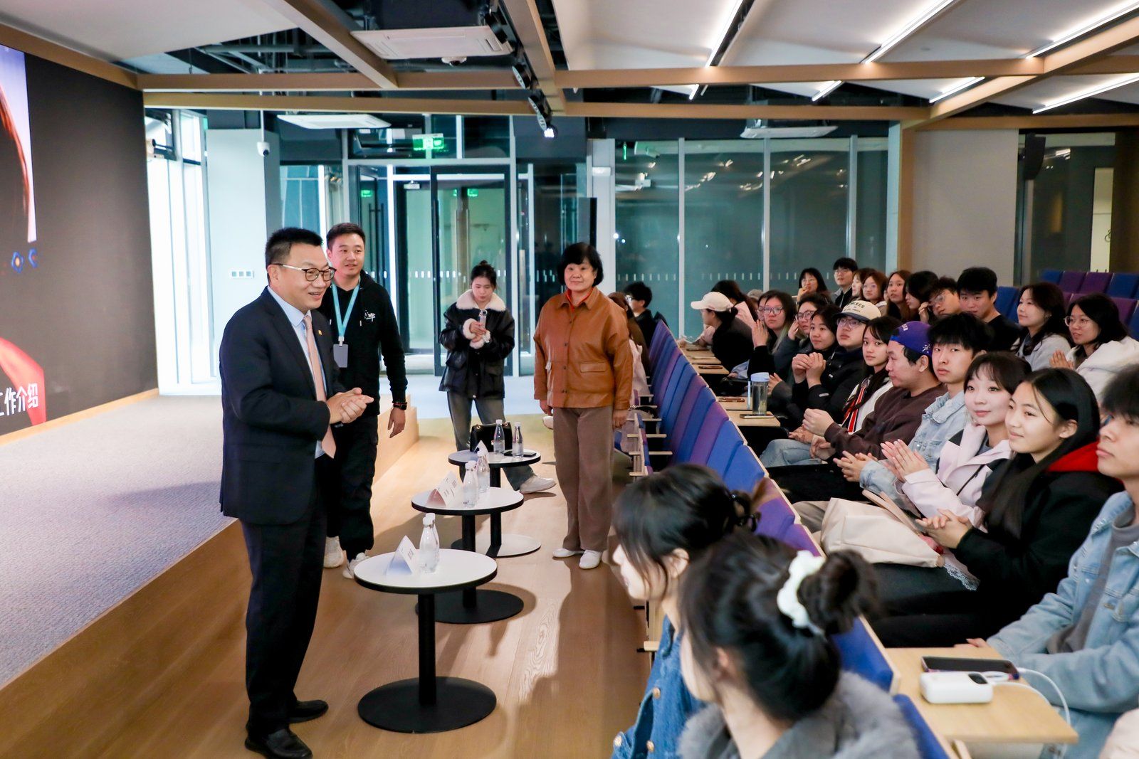 在分享环节,知乎知名AI领域创作者陈珂(皮耶霍)结合自身从业经历,以“AI时代的内容创作:从技术到表达”为题带来主题分享。学生们也提出了“AI创作的版权问题”“非技术专业如何入门AI应用”等问题与嘉宾互动。