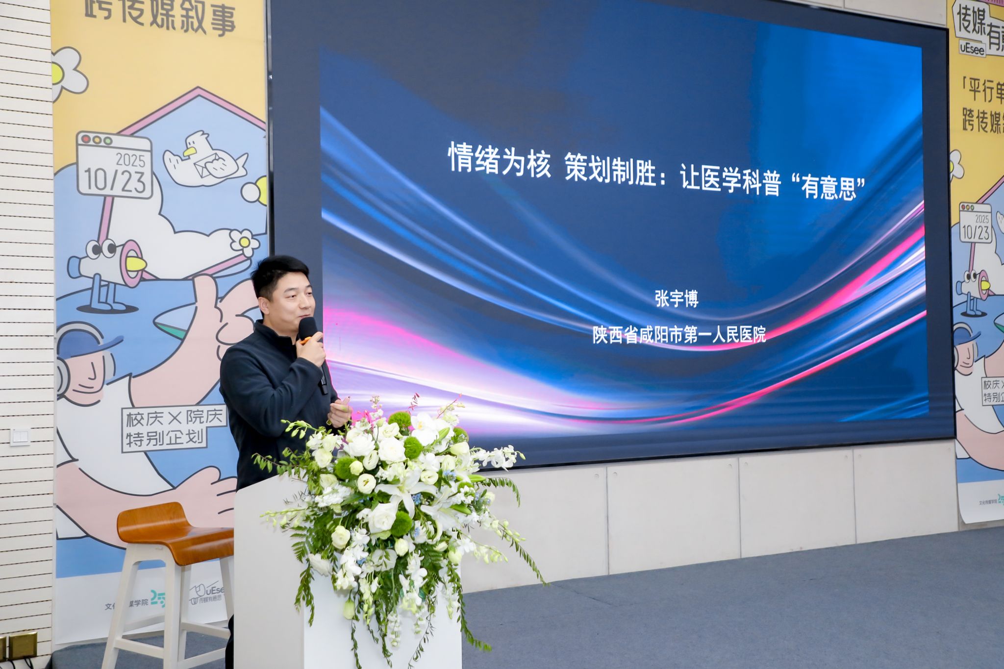 论坛上,咸阳市第一人民医院融媒体中心主任张宇博介绍了该院融媒体团队,以“情绪为核、策划制胜”为理念,让晦涩的医学知识在抖音平台、哔哩哔哩(bilibili)平台如何实现亿级传播效果。他们始终坚守医疗本质——无剧本、重专业、轻治疗,在创新与风险间找到平衡。传媒不仅是传播工具,更是知识普惠的桥梁。