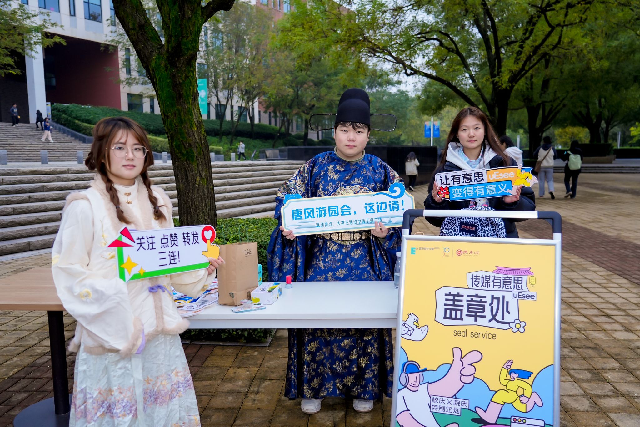 从梧桐街区序章的唐诗光影长廊,到大学生活动中心下沉广场主章的千灯盛景,10月23日这场唐风游园会,恰似一场穿越千年的传媒雅集,在媒介与身体的对话实验中,传媒人以最古老的方式,实践着最当代的传播命题。