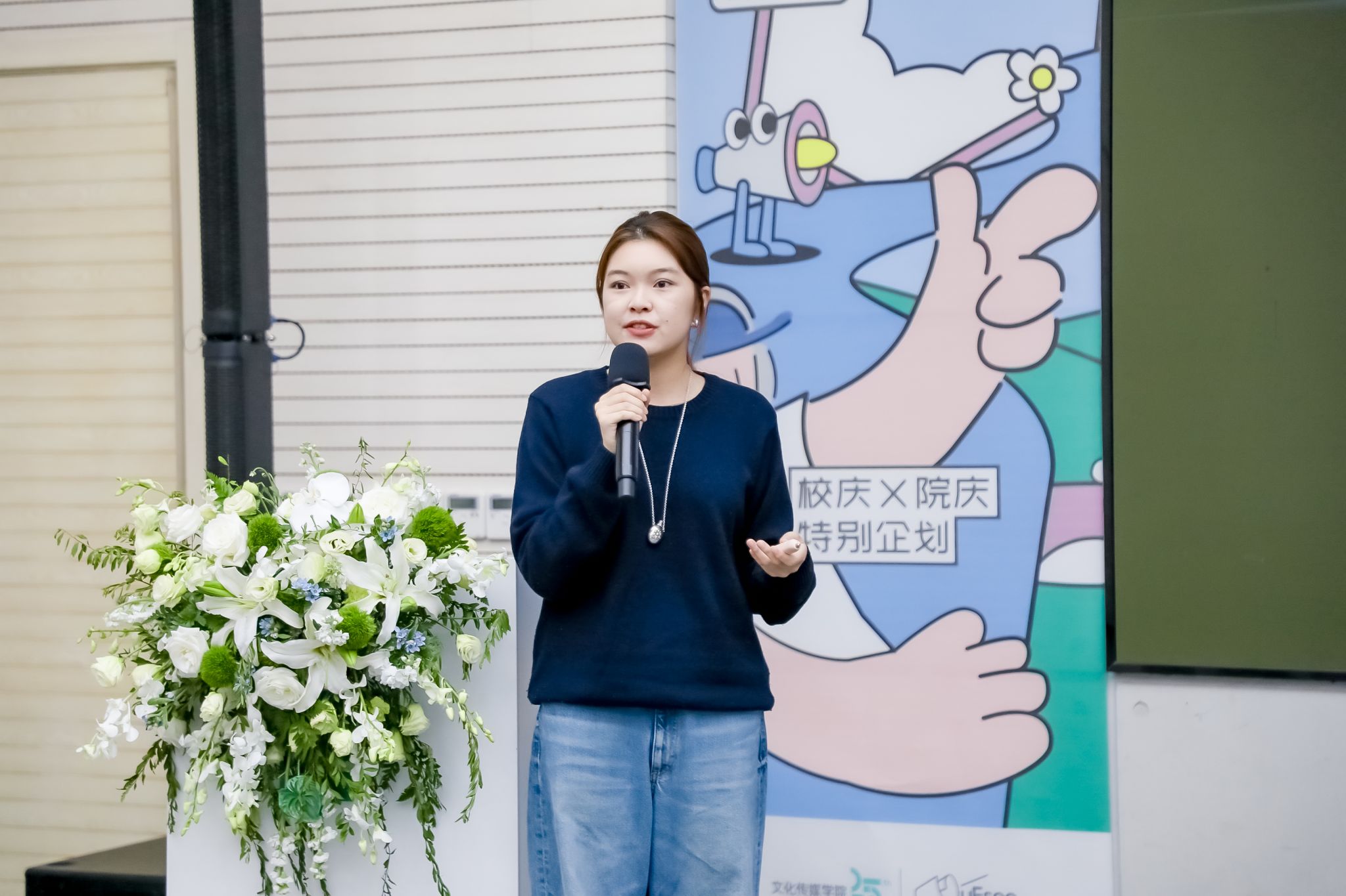随后,文化传媒学院的多位校友分享了自己的成长和职业经历。文化产业管理专业2016级校友邹瑞谦(脱口秀演员、笑点喜剧剧场经理)始终以“玩的心态”投入工作,认为世界上没有弯路,只有不断学习与试错的必经之路,把每一次表达都当作与世界的真诚对话。