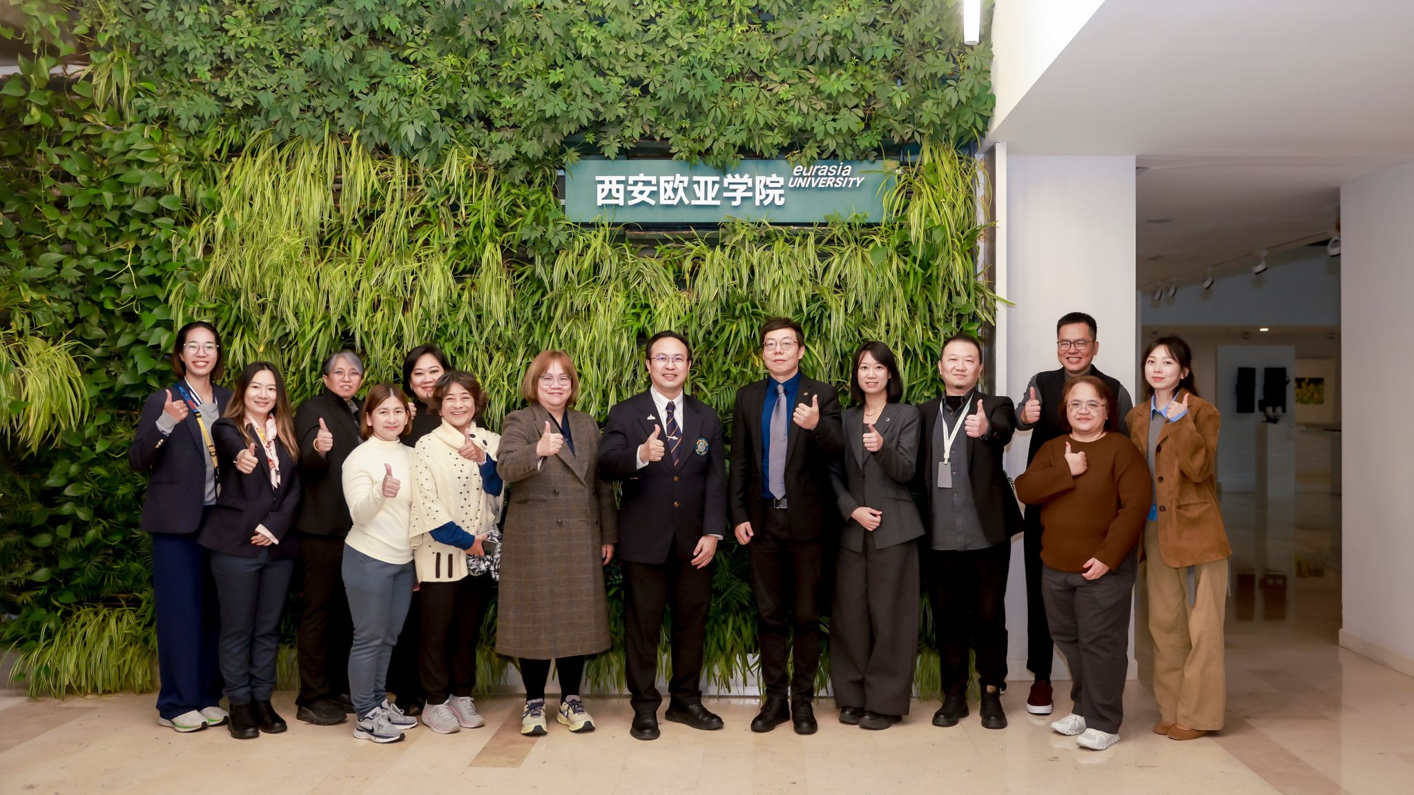 北京电影学院院长扈强(左一)与欧亚师生交流