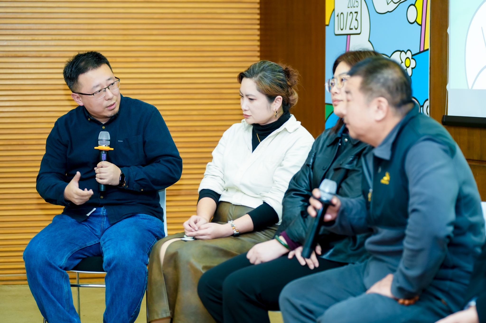 10月23日下午,春山里木礼堂,上海青云美职数字科技有限公司总经理刘成、北京童立方文化品牌管理有限公司营销总监千鹏飞、陕西新华传媒出版集团陕西融创数字传媒有限公司副总经理步强、天雨流芳(西安)数字科技有限公司总经理佘文博、西安乐识教育科技有限公司总经理吕新召与陕西师范大学博士生导师王勇安教授,共同解码行业前沿趋势,深入探讨技术驱动下数字出版人才培养的全新路径。