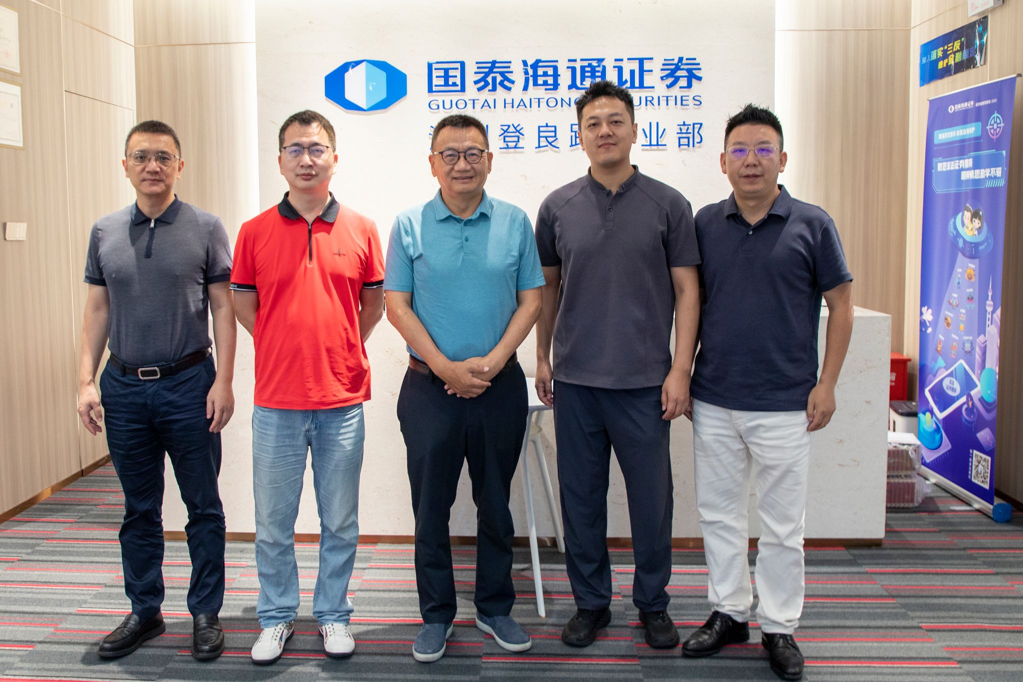 胡建波一行走访巨翔(右二)所在的国泰海通证券股份有限公司深圳登良路证券营业部