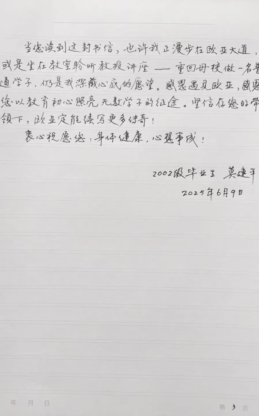 亲爱的欧亚,您永远是我心中最珍贵、最美好的记忆,这里承载了我一生中最精彩的岁月。在您30岁生日之际,祝您生日快乐!盼您未来桃李满枝、声誉远扬,您永远是我“平凡世界的一束光”,时刻激励着让我成为光,温暖自身,也照亮别人!