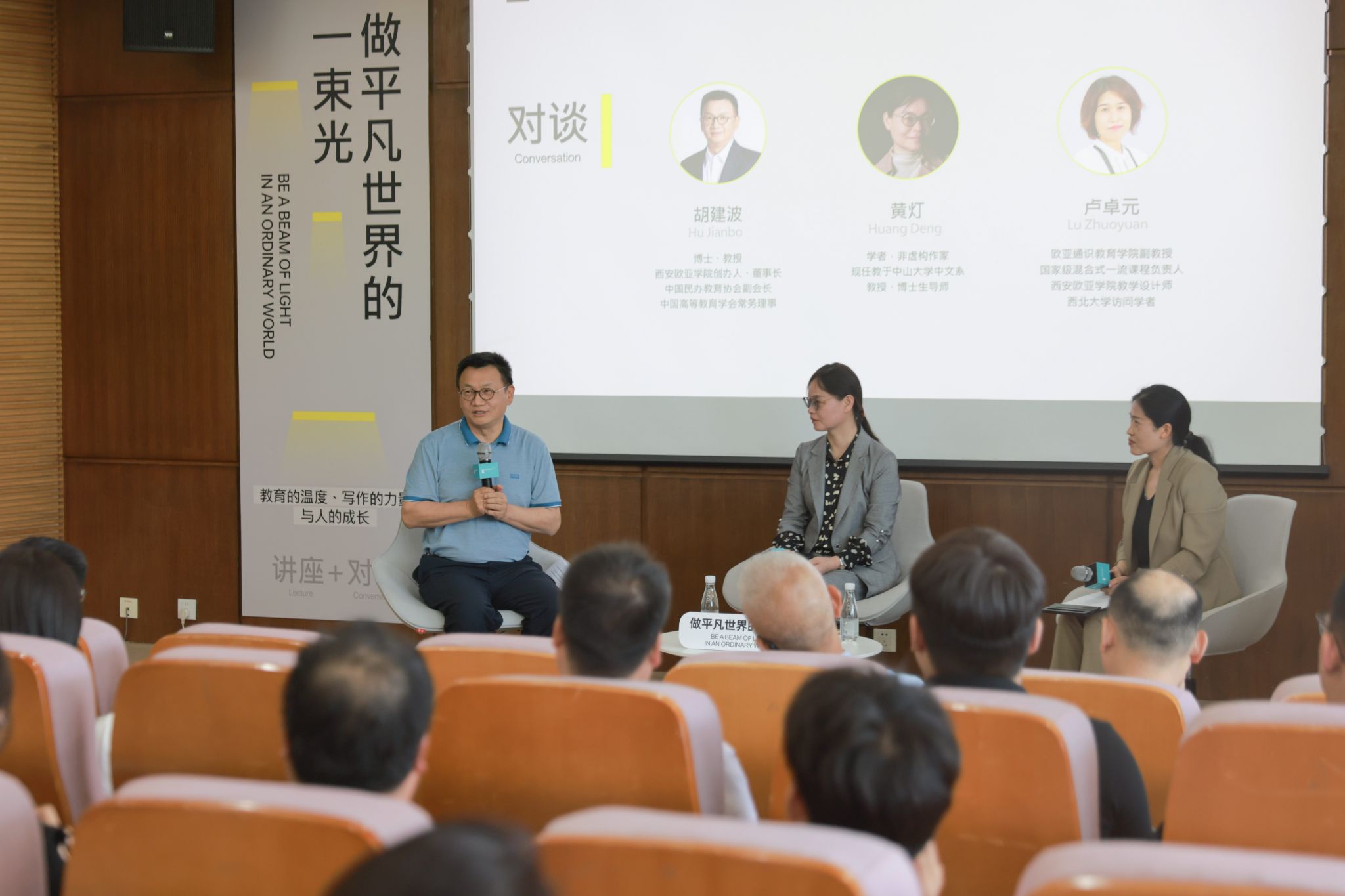 那么我们内心想要的是什么呢?黄灯老师写了《我的二本学生》来指出问题。我在二十年前写了一本书,叫做《教育的偏见》,“偏见”二字并不带有立场,而是说我对教育这件事有着和当时的主流不太一样的见解。三年前,欧亚校史出版,定名为《按你本来的样子生长》,表达我们对于教育变革的一种勇敢的追求,以及欧亚倡导做自己的价值主张。今年我自己的第三本书《做平凡世界的一束光》即将出版,我认为在教育哲学层面,欧亚的办学实践与黄灯老师是完全一致的。