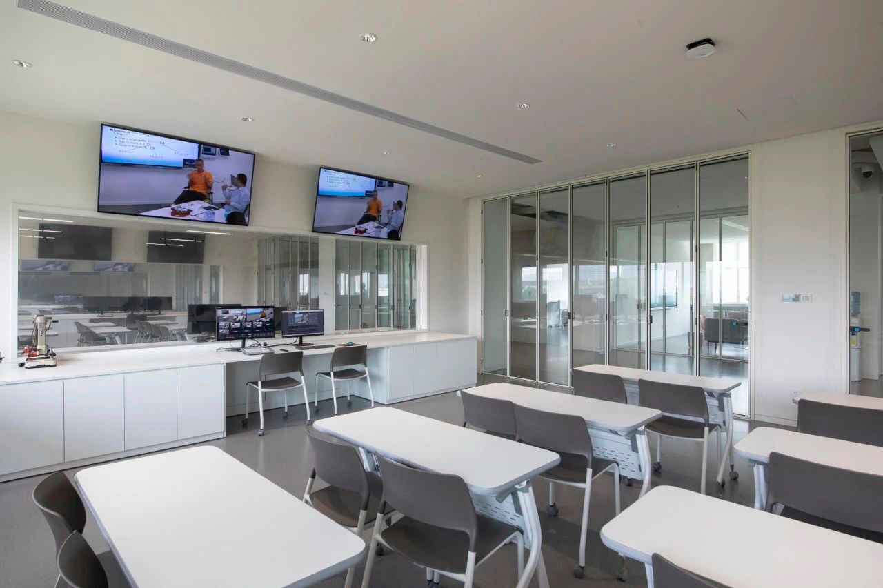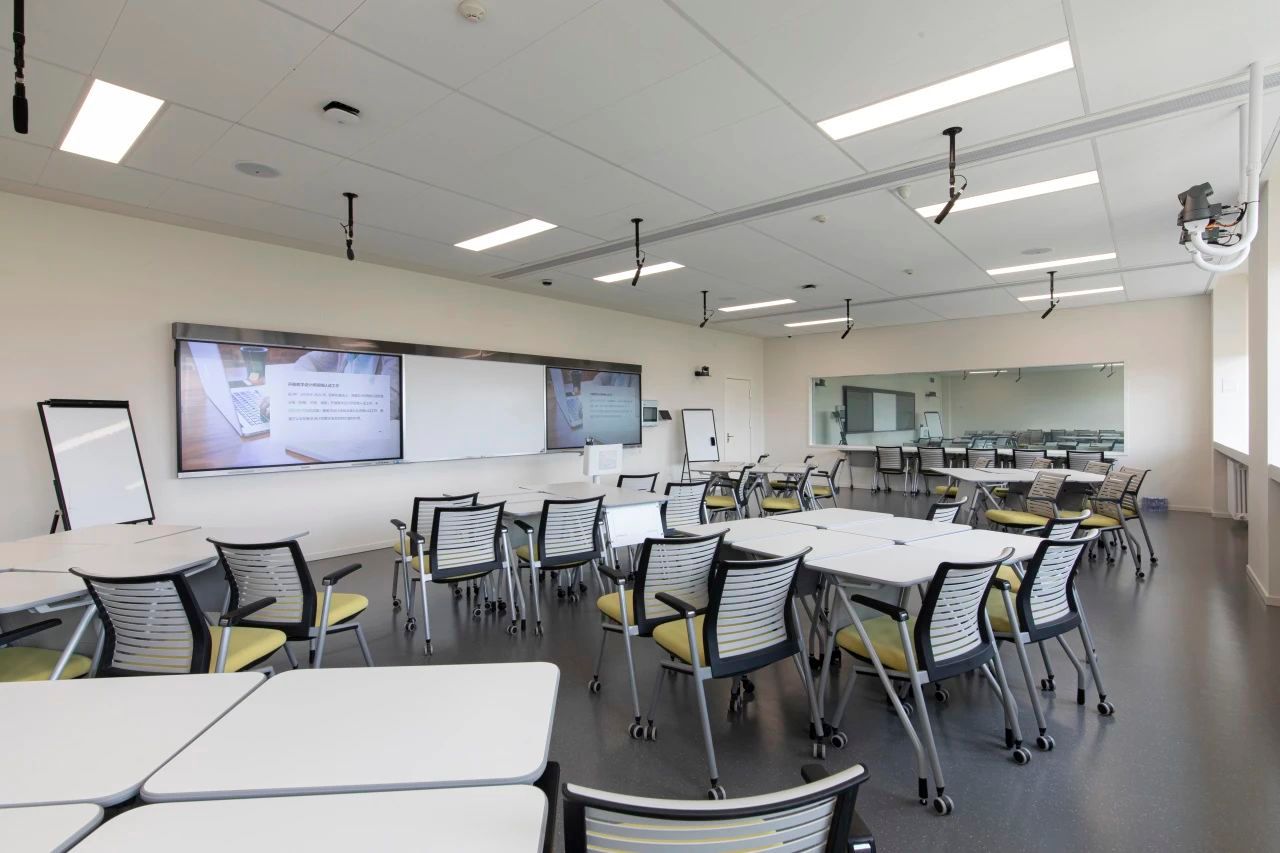 欧亚的独特之处在于,它打破了传统校园"三点一线"的机械分区,通过开放共享的教研空间,促进教师间的跨学科交流,激发教学创新;其次,学习区与生活区的有机融合,使研讨、实践、休息等行为自然发生,这种非正式学习空间能有效提升学生的认知参与度,真正实现了环境育人的本质。