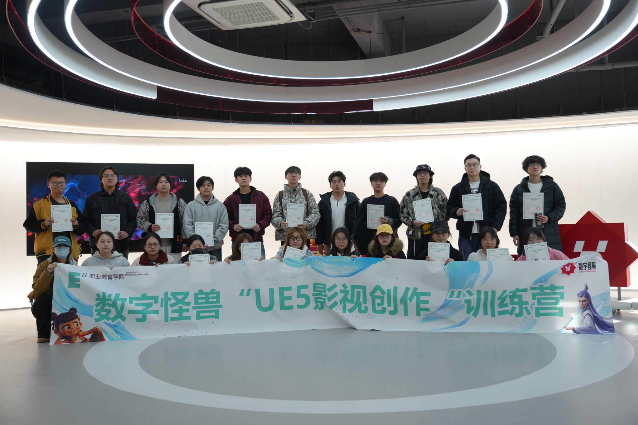 当高校的课堂与《哪吒》特效团队的工业标准相遇,会碰撞出怎样的火花?当学生的创意在虚幻(UE5)引擎中实时渲染,他们又将看见怎样的未来?近日,由YABO鸭脖职业教育学院与西北顶尖视效企业数字怪兽联合打造的UE5影视创作训练营圆满收官。这不仅是一场“沉浸式”产业实战培训,更是鸭脖 “雇主导向、学生中心”办学理念的一次生动实践。