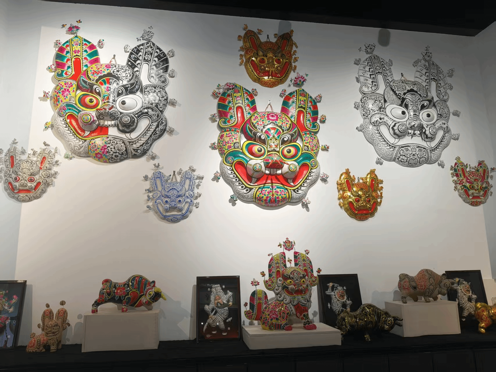 调研的首站从凤翔泥塑博物馆开始。馆内陈列展出着众多名家大师和泥塑手艺人的精美泥塑作品,泥塑类型除了传统的十二生肖,还有栩栩如生的人物塑像,展现出凤翔泥塑不拘泥于单一表现形式、力求呈现百花齐放艺术形态的鲜明特征。这些泥塑造像或憨态可掬,或凶猛威武,为了呈现独特的质地,创作者们还会就地取材,巧用棉花、芦苇等原料对泥塑进行细节加工,从这些活灵活现的作品中,足以窥见中国劳动人民最为朴实、伟大的劳动智慧。