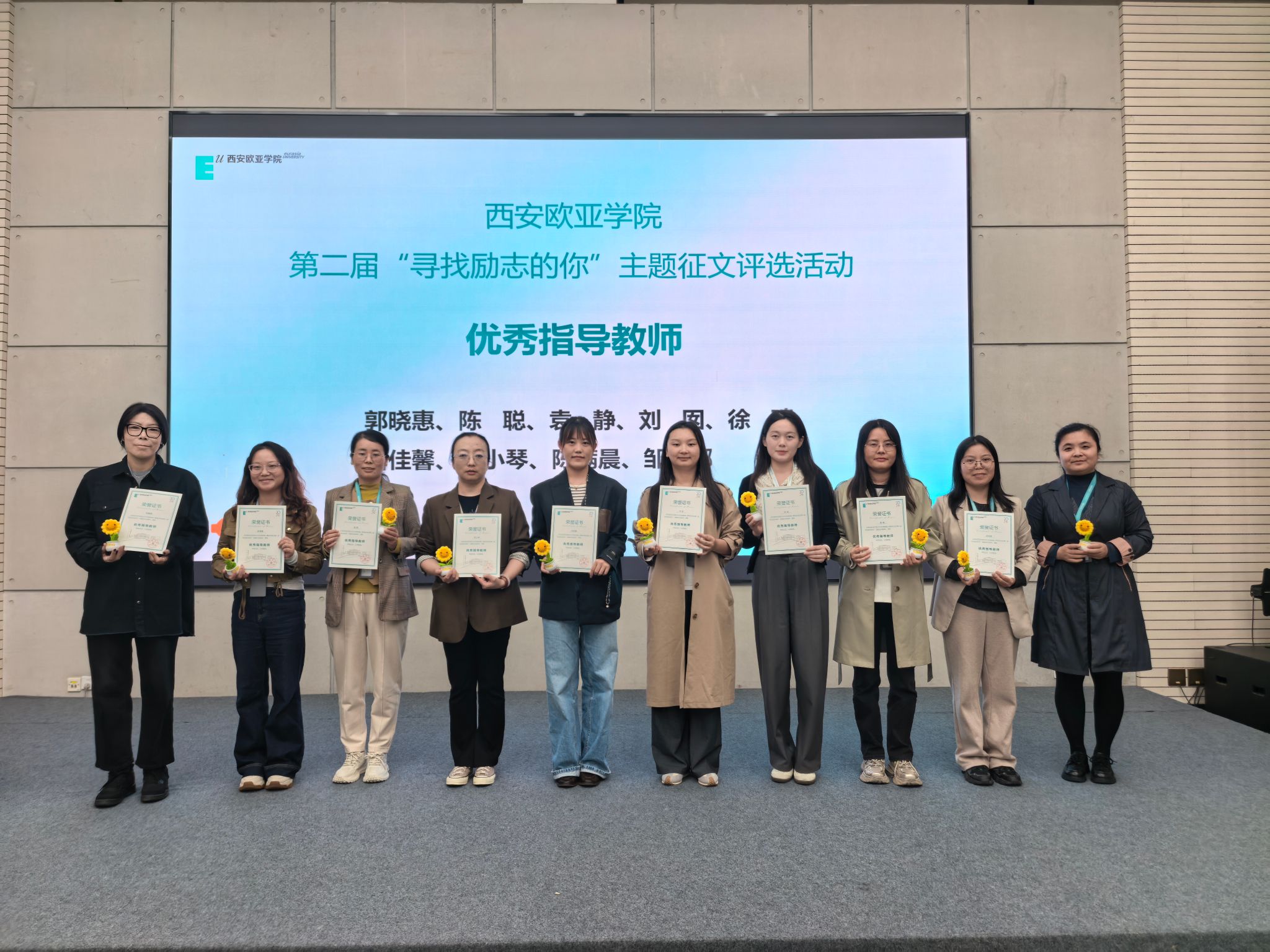学生事务支持中心主管尹渭莉为“第二届寻找励志的你主题征文”优秀指导教师颁发证书