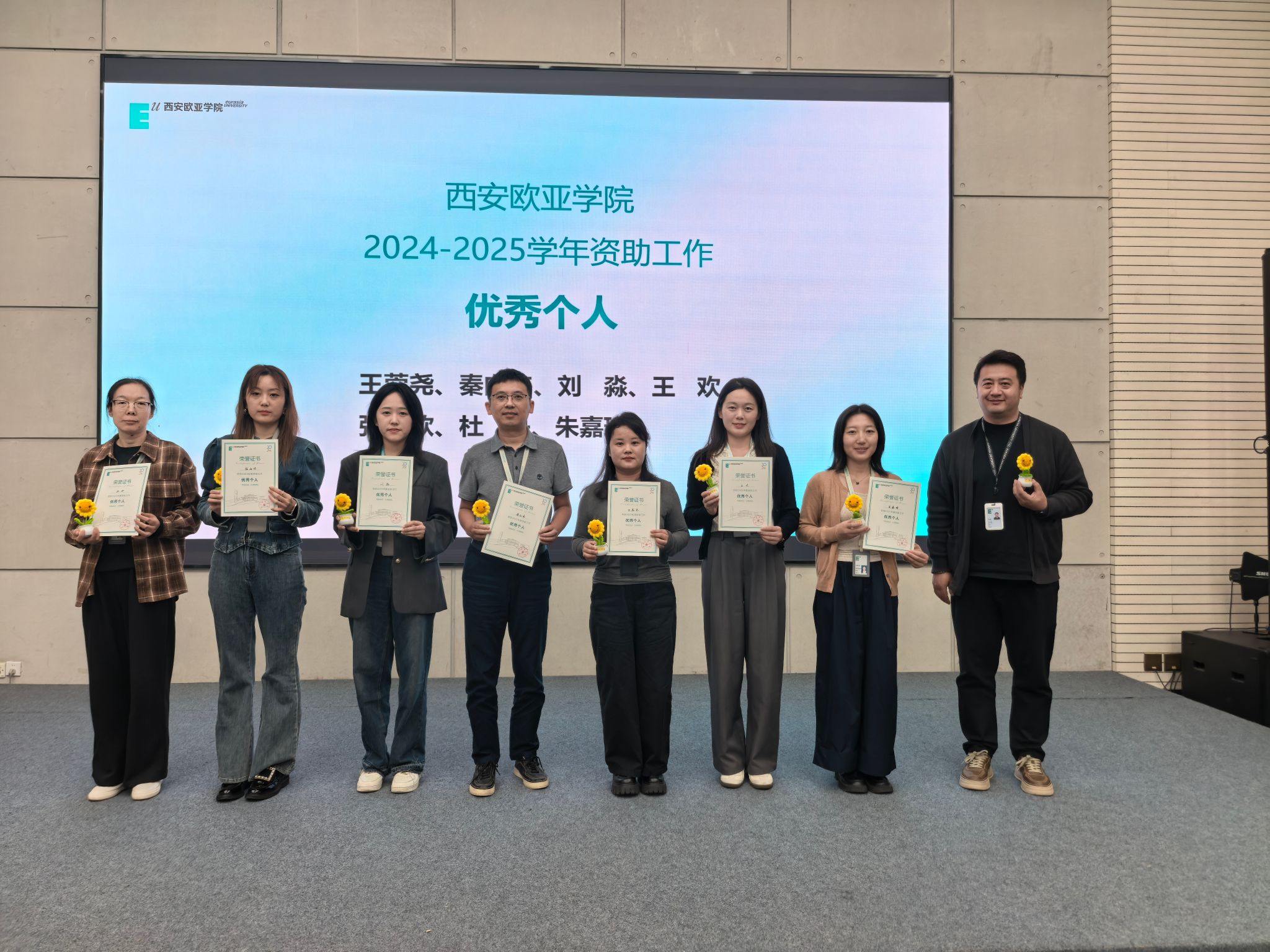 表彰仪式最后颁发的是资助工作优秀组织单位及优秀个人。经评选,有15位老师荣获“资助工作优秀个人”荣誉称号,他们以爱心、耐心和责任心,默默奉献,将资助工作做出了温度与深度,赢得了学生的广泛信赖与尊敬。同时,有5个单位荣获“资助工作优秀组织单位”荣誉称号,他们组织领导有力,工作机制健全,政策执行精准,育人成效显著,是全校资助工作的标杆与典范。